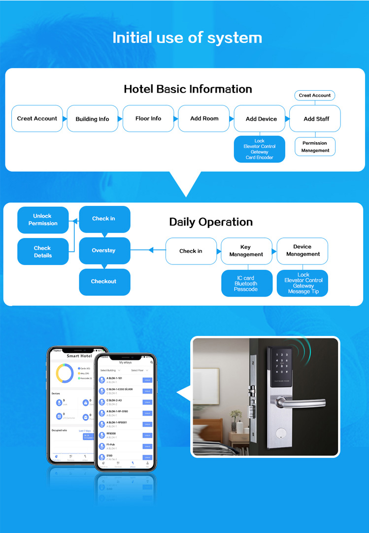 Unlock Ways: RFID Card, Mobile & Web App, NFC, Mechanical key